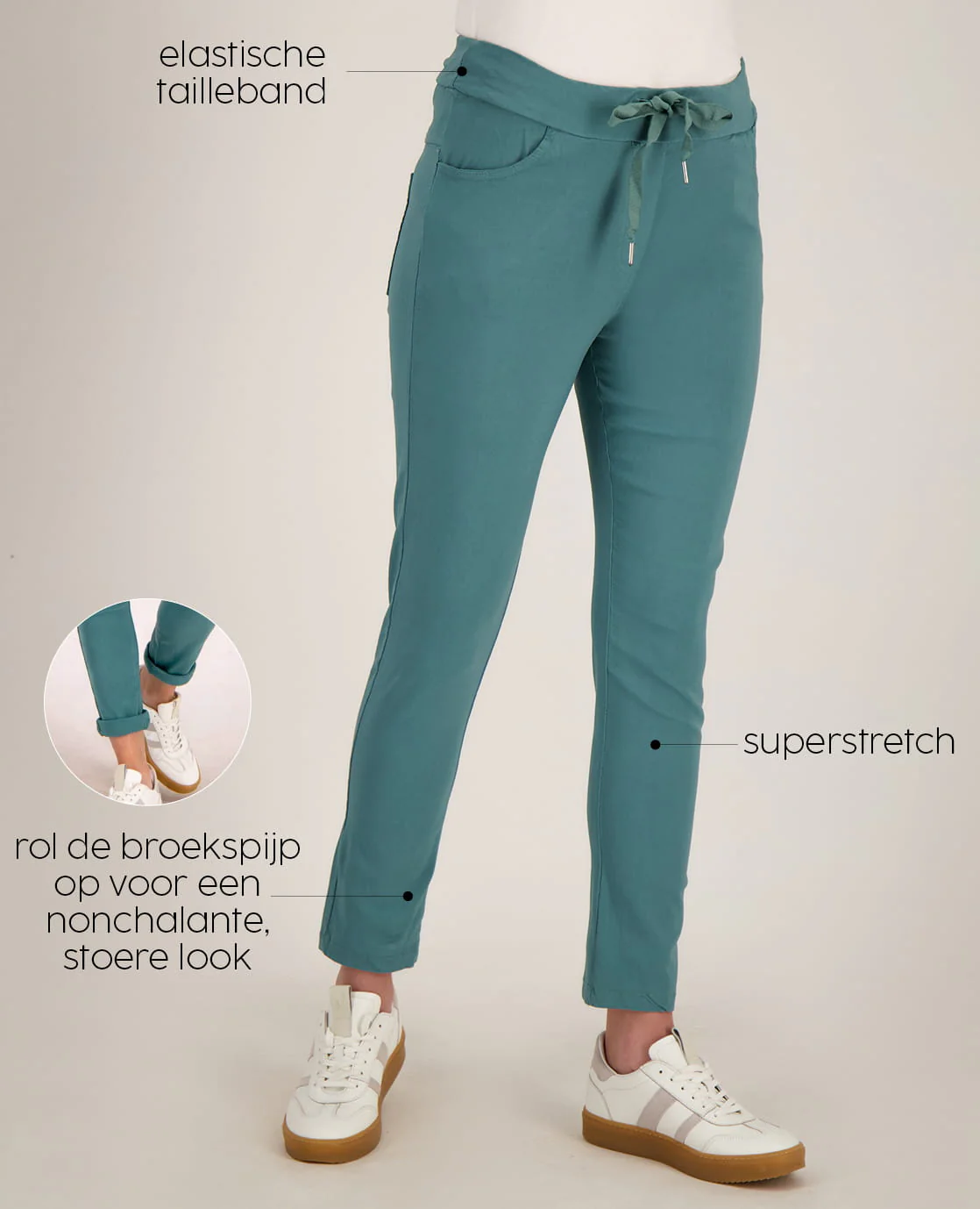 • Elastische taille met een verstelbaar koord