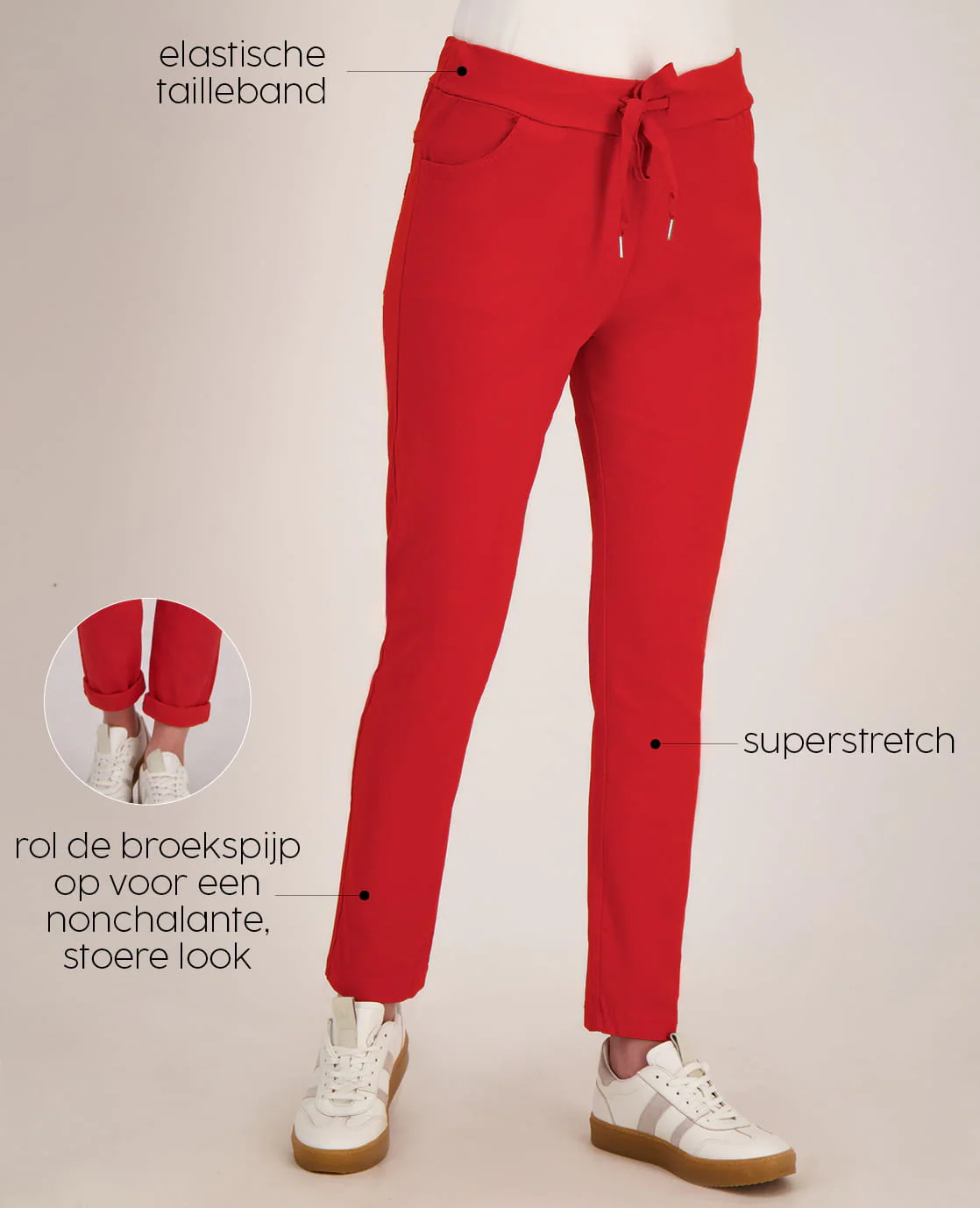 • Elastische taille met een verstelbaar koord