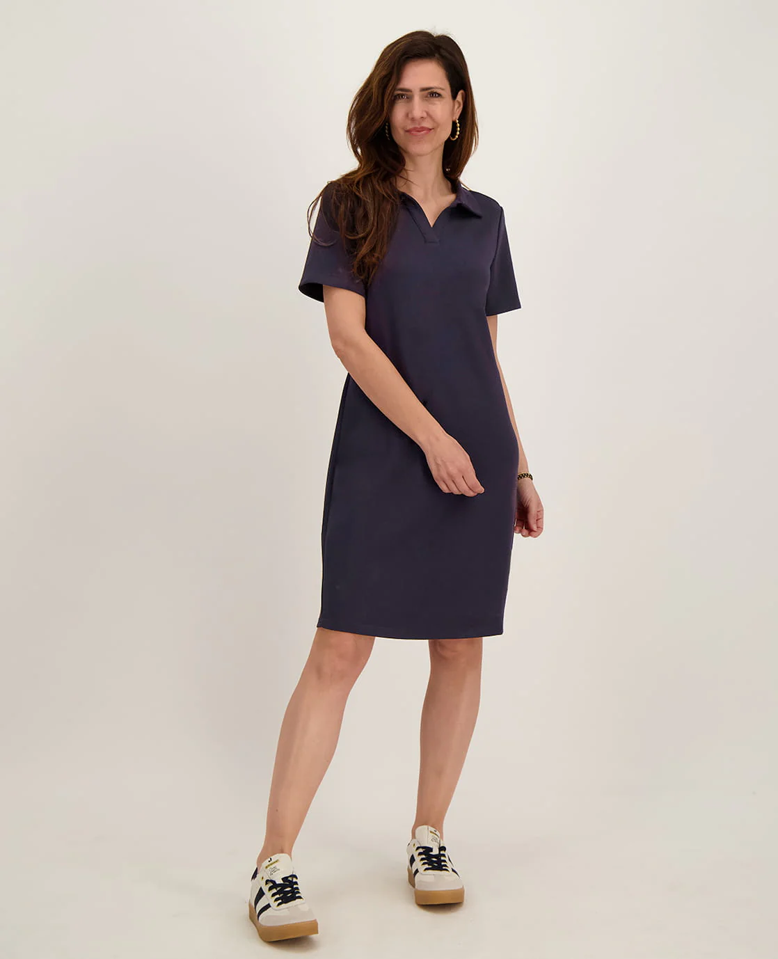 • Gemaakt van heerlijke punto vienna light stof • V-hals met kraagje • Korte mouw